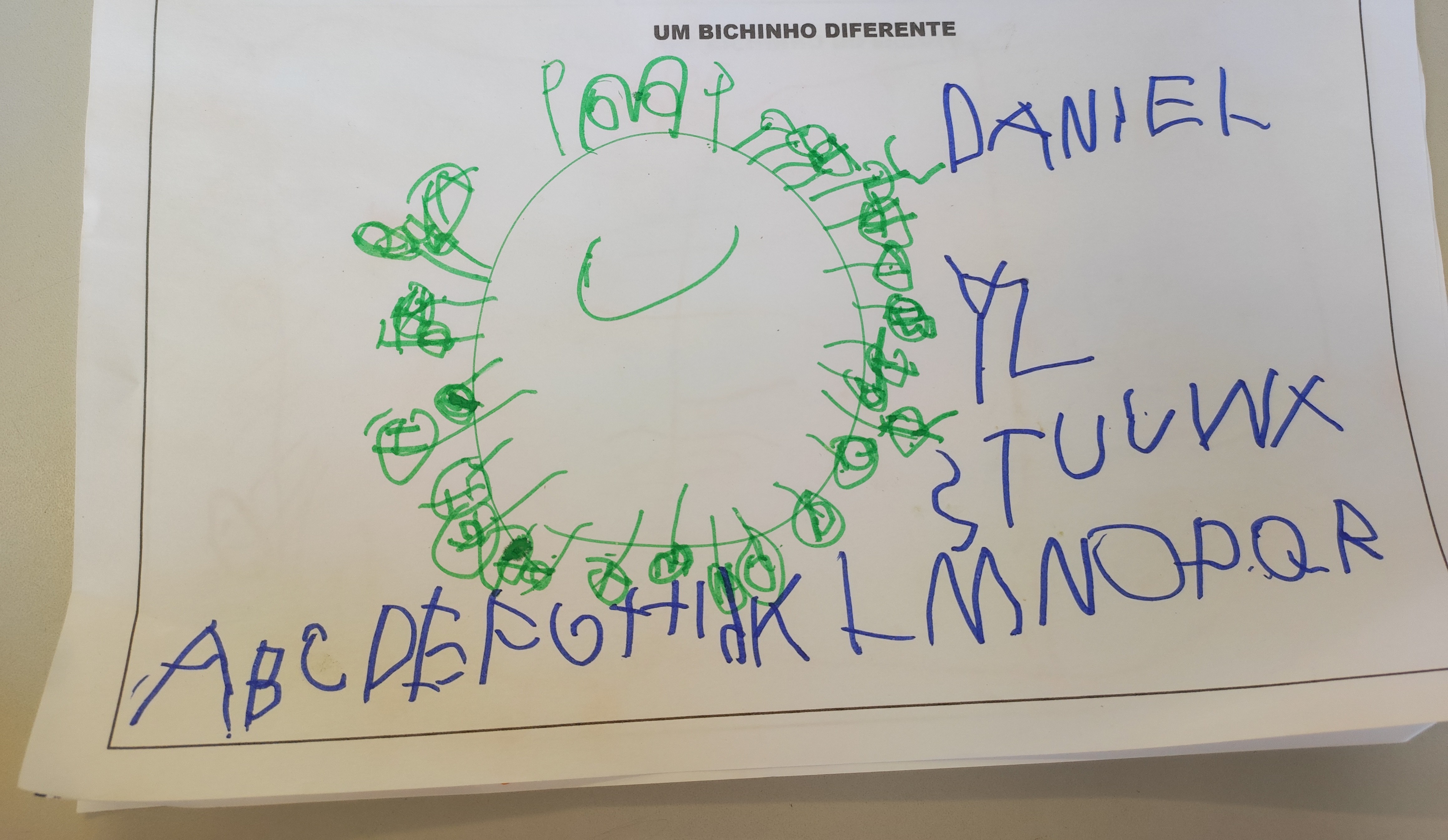 PLANO DE AULA CAMPOS DE EXPERIÊNCIAS ARTICULADOS ( ) O eu, o outro e o nós ( ) Corpo, gestos e movimentos ( ) Traços, sons, cores e formas ( X ) Escuta, fala, escrita, pensamento e imaginação ( ) Espaços, tempos, quantidades, relações e transformações ( ) Mundo social e natural - investigação, relação, transformação e preservação SABERES E CONHECIMENTOS Utilização de aspectos convencionais da escrita (uso de letras, alinhamento, orientação etc.). OBJETIVOS DE APRENDIZAGEM E DESENVOLVIMENTO (CG.EI03EF07a.d) Reconhecer as letras do alfabeto nas diferentes situações da rotina. ENCAMINHAMENTOS METODOLÓGICOS 1º MOMENTO Apresentar aos alunos a história do bichinho diferente, preferencialmente utilizando algum tipo de recurso: imagens, luva de história. Após contação, realizar alguns questionamentos sobre a história. Vocês perceberam quantas patinhas esse bichinho tem? 2º MOMENTO Relacionando a quantidade de patinhas, realizar leitura coletiva das letras do alfabeto no painel da sala. 3º MOMENTO Solicitar que façam a ilustração da história contada. Lembrar que devem colocar as patinhas e que cada uma representa uma letrinha do alfabeto. Ao fim expor a atividade na sala. RECURSOS UTILIZADOS NA AULA Recurso para contação de história, painel do alfabeto, papel sulfite, lapis de cor, canetinha, Só para apreciação... olhem como ficou esta atividade realizada com minha turma de grupo 5. |